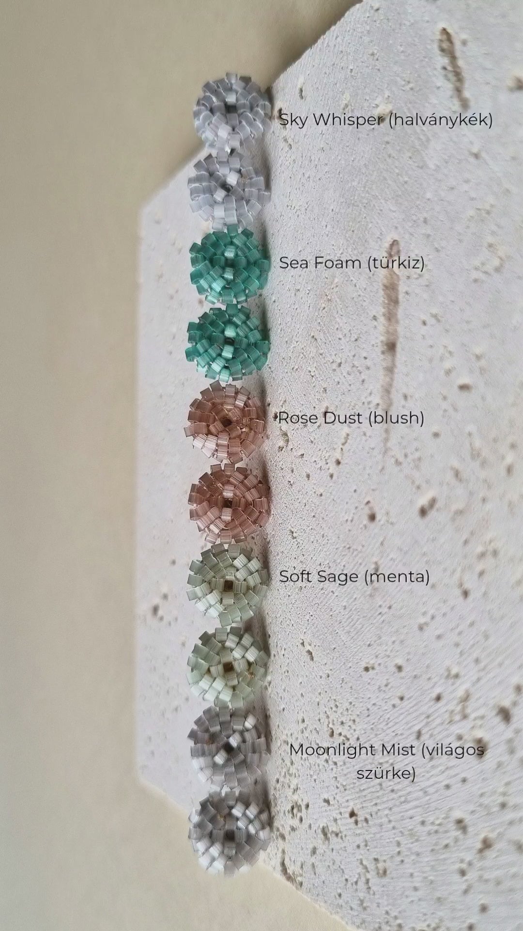 Minden darab kézzel készült silk satin Miyuki Delica gyöngyből – ezek különleges, selymes fényű japán gyöngyök, melyek finoman tükrözik a fényt és egyedivé teszik a megjelenést.